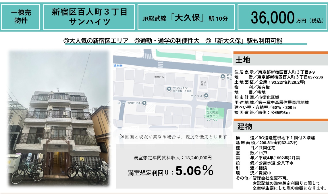 - 東京都新宿区百人町3丁目 新宿区百人町3丁目サンハイツ